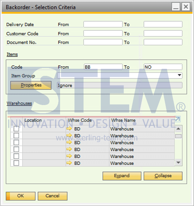 - Item (Barang): Filter berdasarkan item tertentu yang sedang backorder.
