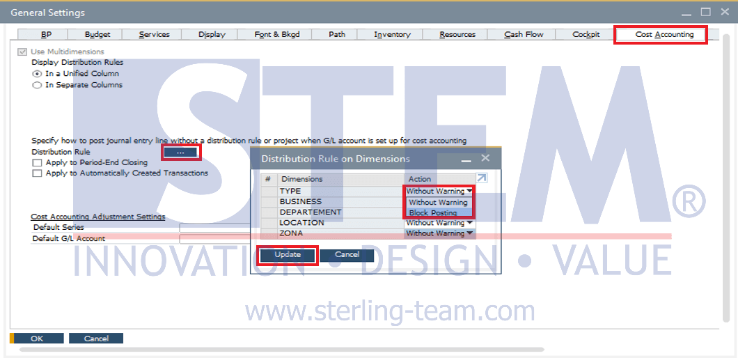 • Klik Update untuk menyimpan pengaturan Distribution Rule, lalu klik Update juga di jendela General Settings.
