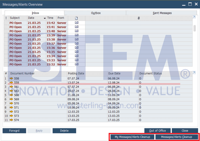 Kini, mulai dari versi 10.0 FP2208, SAP memperkenalkan fitur yang lebih praktis untuk membersihkan pesan dan notifikasi secara massal melalui jendela Messages/Alerts Overview.