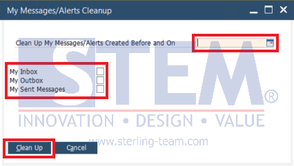 Peringatan Penting: Sebaiknya fitur “Messages/Alerts Cleanup” hanya diberikan kepada pengguna tertentu, karena tindakan penghapusan ini berdampak pada data message seluruh pengguna.
