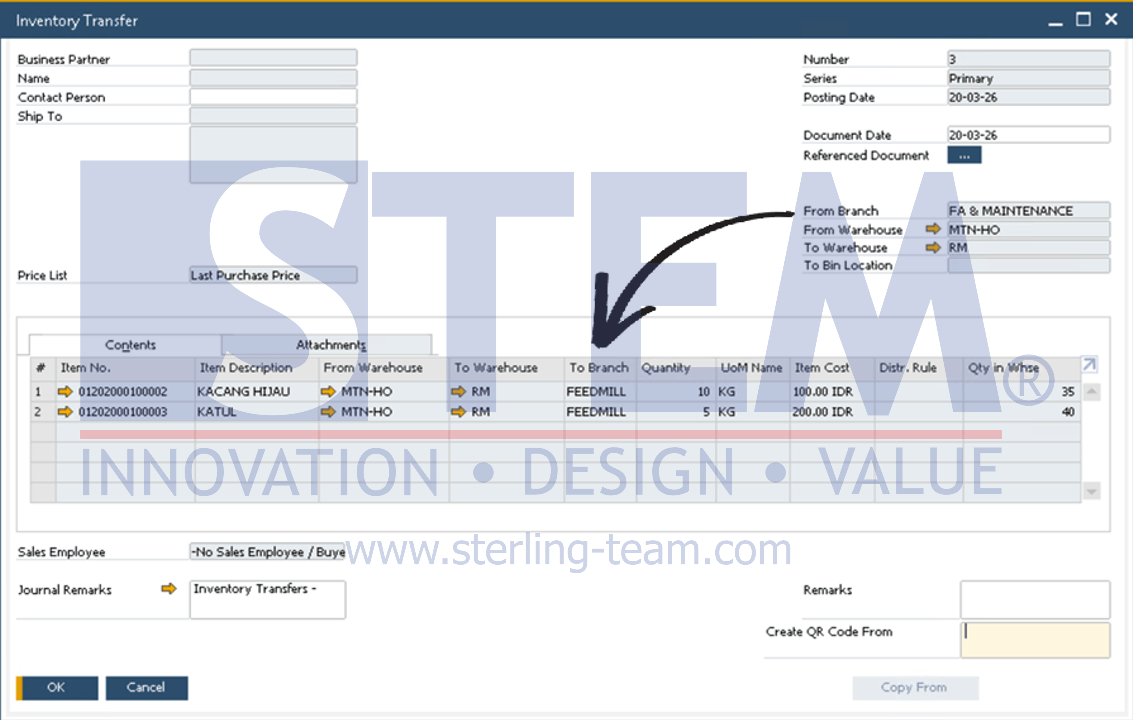 💡 Inventory Transfer dilakukan langsung antar warehouse dengan branch yang berbeda