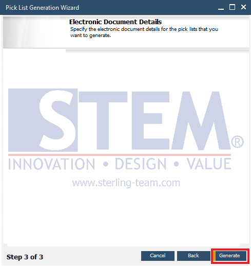 - STEP 3: klik tombol Generate untuk membuat dokumen Pick List.