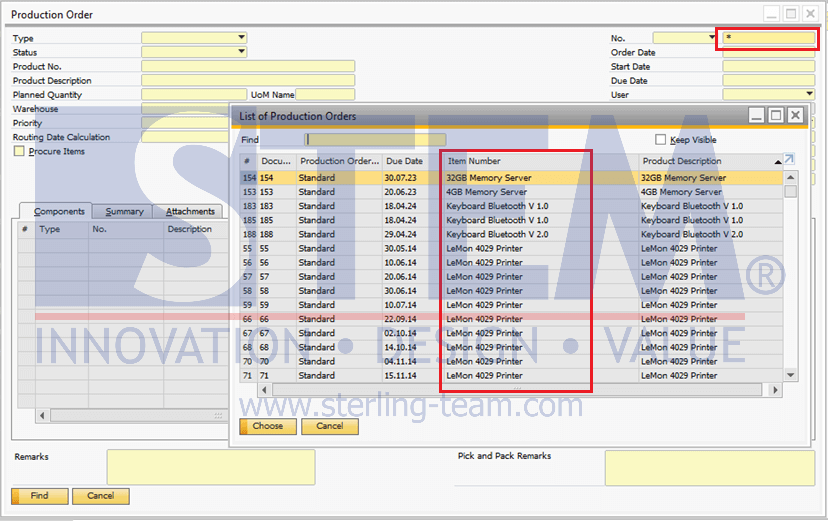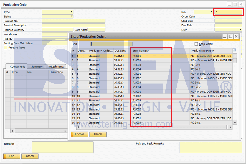 Pernahkah Anda mengalami situasi di mana saat mencari dokumen Production Order melalui mode Find, di jendela List of Production Orders, kolom Item Number menampilkan nama atau deskripsi item, bukan kode item?