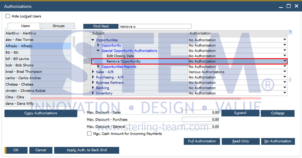 Mengelola Otorisasi Remove Opportunities di SAP Business One