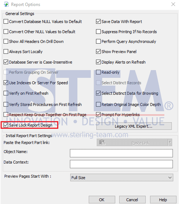 2. Centang opsi “Save Lock Report Design”.
