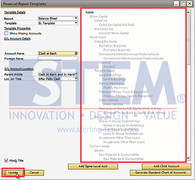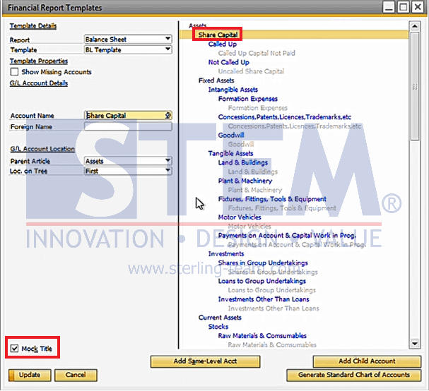 SAP B1 menyediakan cara sederhana untuk menyembunyikan Title Account, yaitu dengan menggunakan opsi Mock Title dalam Financial Report Template. Berikut adalah langkah-langkah untuk melakukannya.